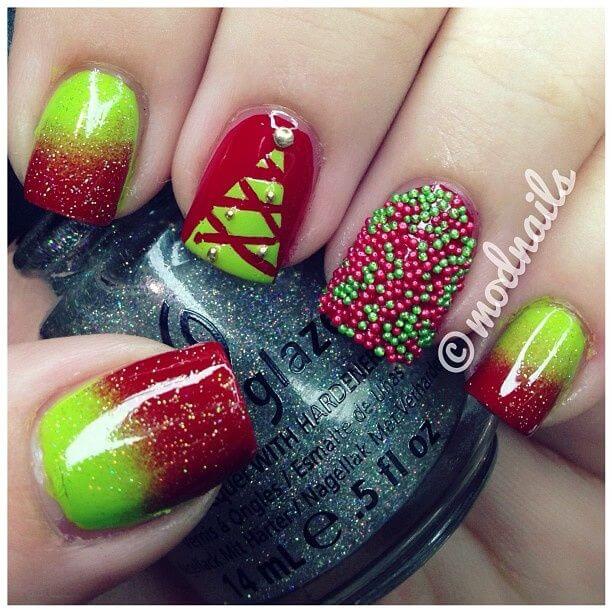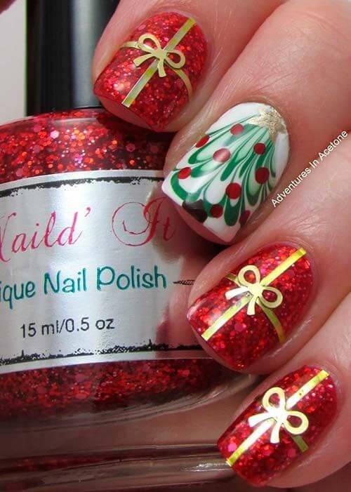 Puntos en los lugares perfectos, o el glitter adecuado y sus combinaciones crea un efecto Ășnico sobre las manicuras navideñas.